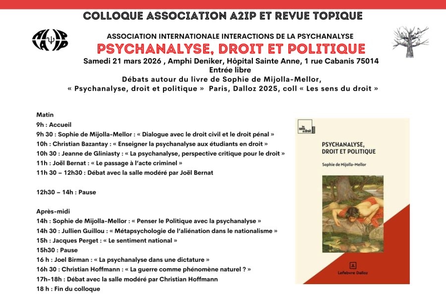 L’A2IP en relation avec la revue Topique, La psychanalyse aujourd’hui, organise des rencontres scientifiques et des débats sur des thèmes contemporains mettant en relation l’approche psychanalytique avec les autres champs du savoir et donnant ainsi à la psychanalyse toute sa place dans le présent et l’horizon des civilisations.
